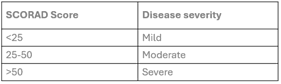 SCORAD is a tool used in clinical trials to assess atopic dermatitis severity based on disease area, intensity and subjective symptoms (itch and sleeplessness). For further information about SCORAD click here.